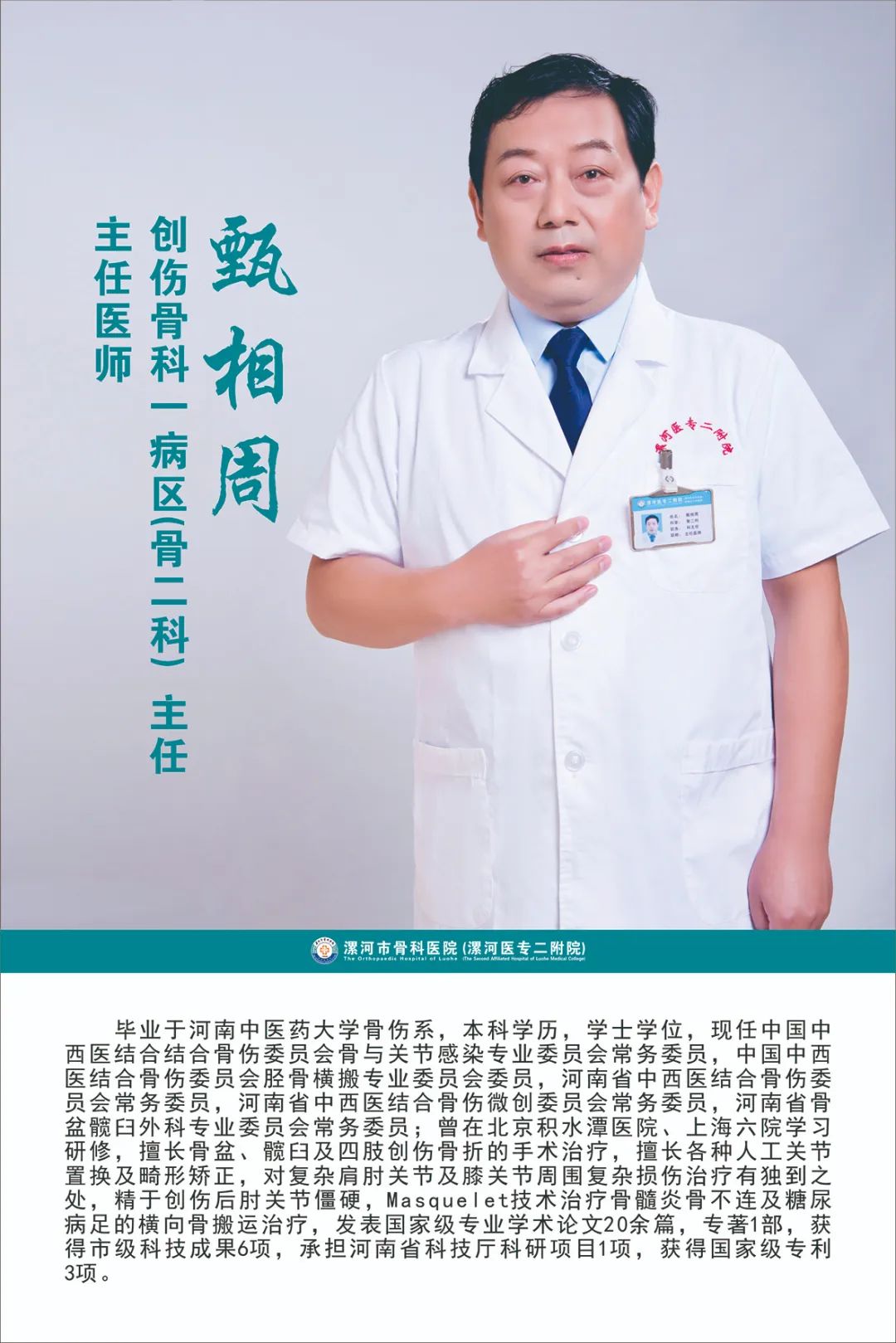 骨醫(yī)名家|漯河市骨科醫(yī)院創(chuàng)傷骨科 甄相周主任