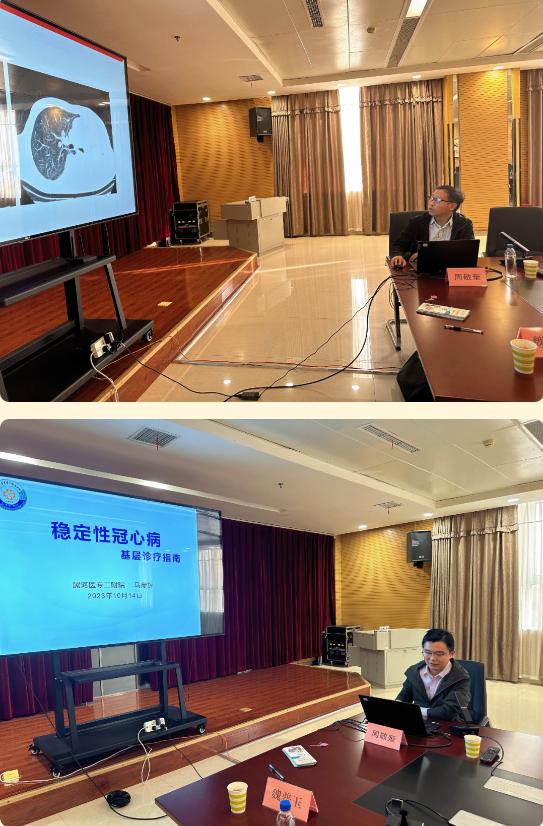 沙龍活動現場,主要采取學術講座與現場討論交流形式進行。呼吸內科周敬奎主任,共產黨員、沈昊昊主治醫師,心血管內科二病區馬彥輝副主任醫師分別就《肺栓塞的規范診治》《高血壓心臟病的規范診治》《穩定性冠心病基層診療指南》進行精彩分享。講課結束后各位專家結合自身臨床經驗及個人專業特點,圍繞具體病例進行學術討論,進一步提高了醫聯體基層醫務人員的理論知識,參會人員紛紛表示受益匪淺。