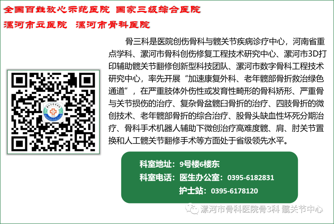 骨三科作為漯河市髖關節治療中心,90歲以上老人,占據科室住院患者1/3以上,為更好的為老年患者服務,骨三科開辟了老年髖部骨折患者綠色通道,精準治療,使老年髖部骨折患者快優康復,避免長期臥床,減少并發癥的發生,大大的降低了老年髖部骨折一年內死亡率。近年來,我院出臺了諸多方便老年人就醫的服務措施,持續提升患者就醫服務體驗,以實際行動為患者送溫暖、辦實事、做好事,營造敬老愛老助老的良好氛圍。