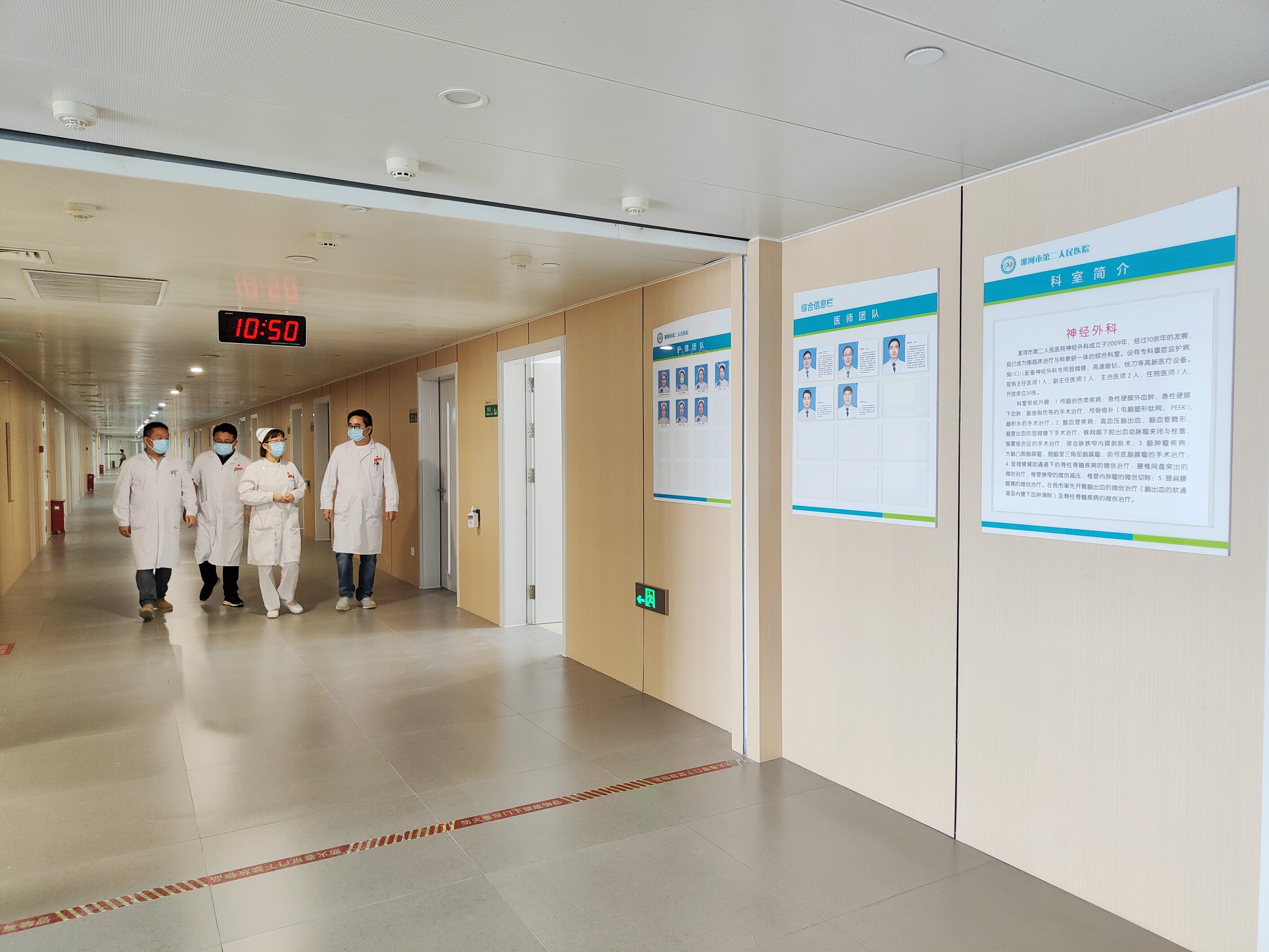 搬遷后的神經外科新病區位于2號樓(門診部)9樓,設置病床45張,設有專科重癥監護病房( ICU ),擁有主任醫師1人、副主任醫師2人、主治醫師2人、住院醫師1人,配備了專用顯微鏡、高速磨鉆、銑刀等高新醫療設備,科室是醫院重點學科,醫護團隊技術精湛、團結互助、具有豐富的臨床理論與實踐技術。可開展顱腦創傷類疾病、腦血管疾病、腦腫瘤疾病等的預防與規范治療;顯微鏡輔助通道下脊柱脊髓疾病的微創治療;頸肩腰腿痛的微創治療。在我市率先開展了腦出血的微創治療(腦出血的軟通道及內鏡下血腫清除)及脊柱脊髓疾病的微創治療。