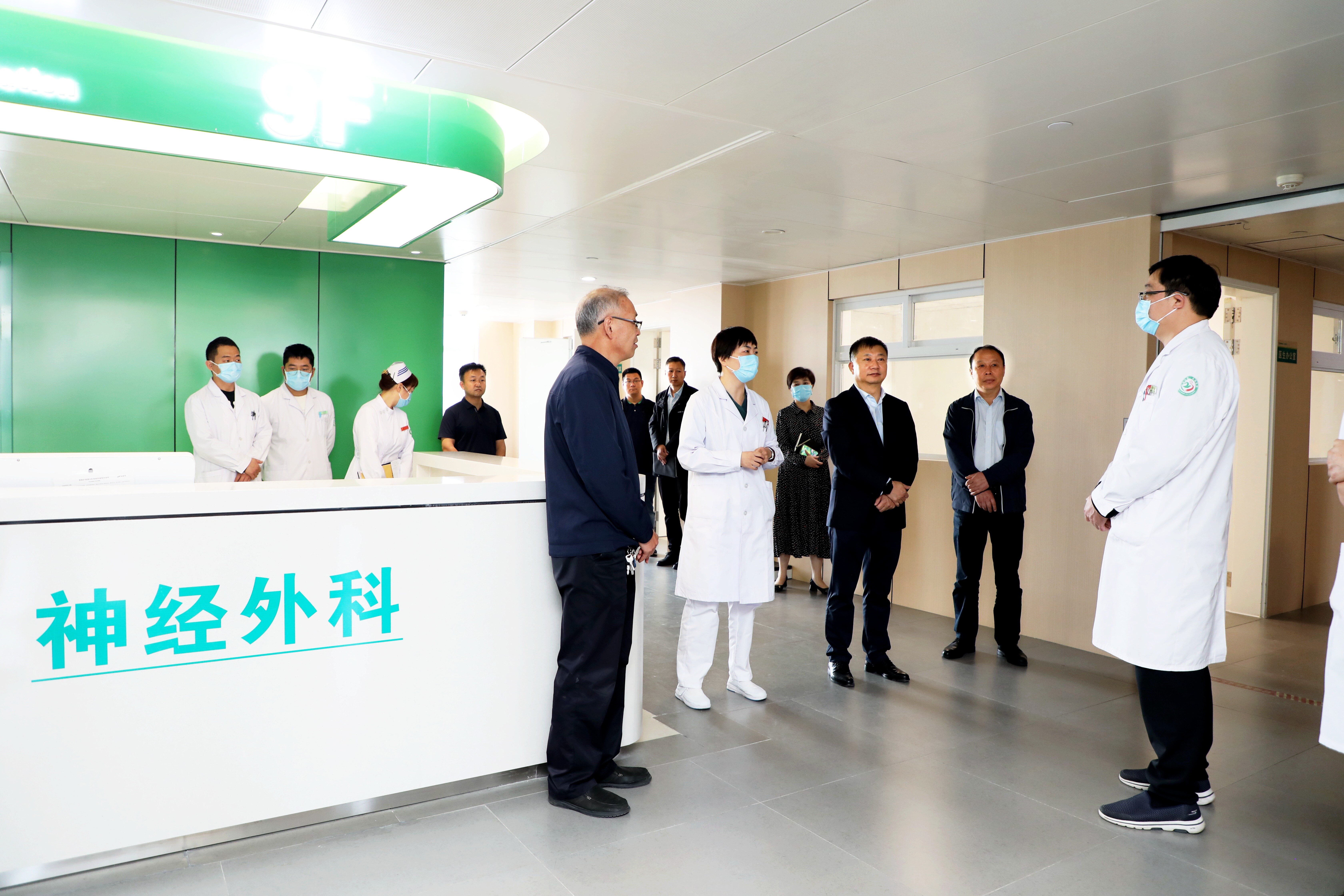 當天上午,市二院黨委書記魏松、院長王瑾攜班子成員帶領相關職能科室人員,到2號樓9樓神經外科新病區查看科室搬遷和物資、設備設施配備運轉情況,同神經外科全體醫護人員親切合影,勉勵大家在新的平臺跑出專業發展新的加速度。