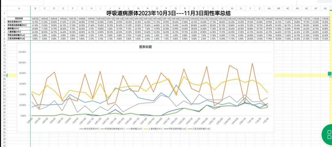 (近期市二院呼吸道病原體陽(yáng)性率折線圖)