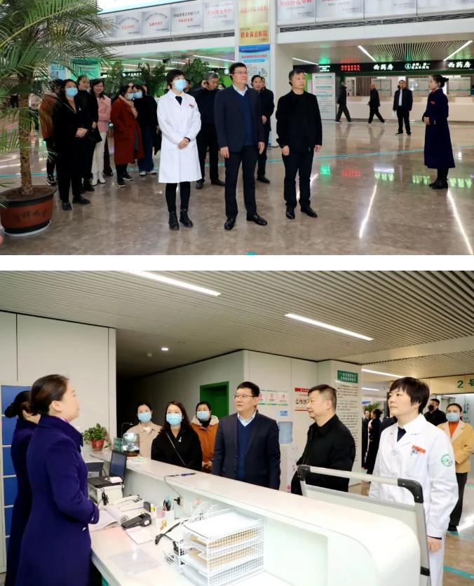 王東升書記一行先后觀摩了一樓大廳黨建引領醫院高質量發展相關展板,和醫保一站式結算中心、病人一站式服務中心、市兒童醫療中心等點位,聽取相關介紹,詳細了解了市二院在落實“改善就醫感受 提升患者體驗”六聚焦六提升行動、“便民就醫少跑腿”七大舉措、清廉醫院建設,以及今年以來靠大聯大通過與鄭大一附院強強聯合促進多學科快速發展等方面的相關經驗和亮點做法,對市二院近年來高質量發展所取得的成績給予充分認可,對全院干部職工凝心聚力干事業、奮楫前行謀發展的精氣神給予了高度評價。