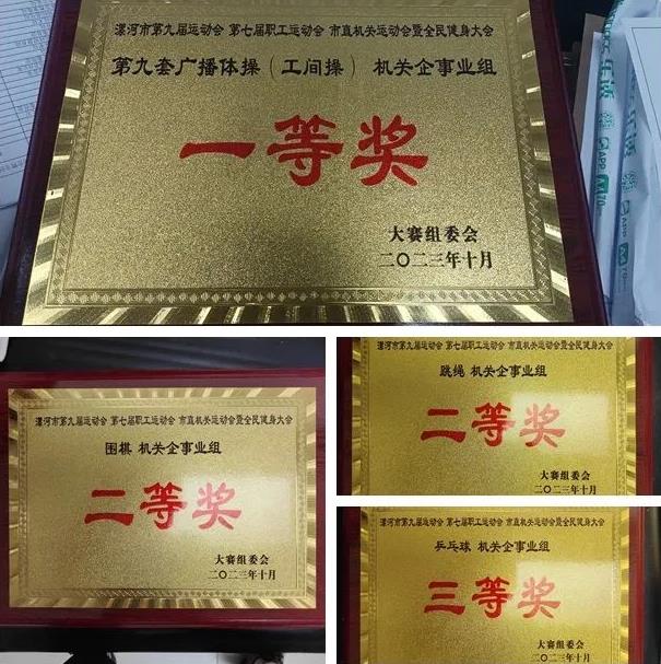 10月17日—21日,漯河市第九屆運動會、第七屆職工運動會、市直機關運動會暨全民健身大會在市體育中心拉開帷幕,市二院代表隊團結協作,奮勇爭先,共選派64名隊員組成代表隊參加了七個大項九個小項比賽項目,一舉奪得第九套廣播體操(工間操)機關企事業組一等獎、團體總分二等獎、優秀組織獎,團體及個人獎等榮譽。