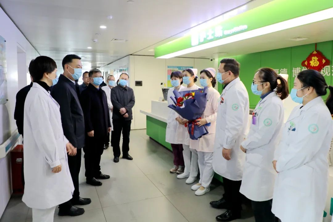 2月8日上午,新春佳節來臨之際,市衛健委黨組成員、市紀委監委派駐第二十一紀檢監察組組長朱黎明一行到市二院看望慰問一線醫護人員,并送上節日的問候。黨委書記魏松、院長王瑾攜領導班子及相關職能部門負責人陪同慰問。