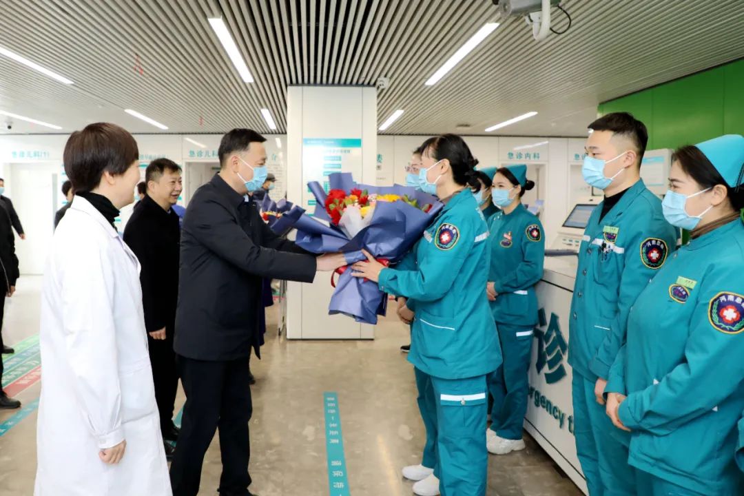 朱黎明一行先后到急診科、病人服務中心、影像科、皮膚科、中醫科、小兒心血管神經血液科,小兒呼吸內科看望慰問醫護人員,他表示,廣大醫護人員始終奮戰在醫療救治的最前線,承擔著光榮而艱巨的職責使命,為護佑全市人民健康提供了堅實保障,在新春佳節到來之際,謹代表市衛健委向辛勤奉獻的市二院全體醫護人員表達誠摯的感謝和新年的祝福。