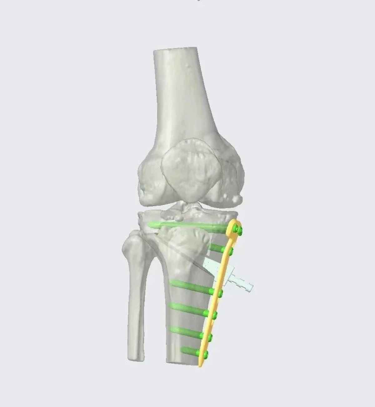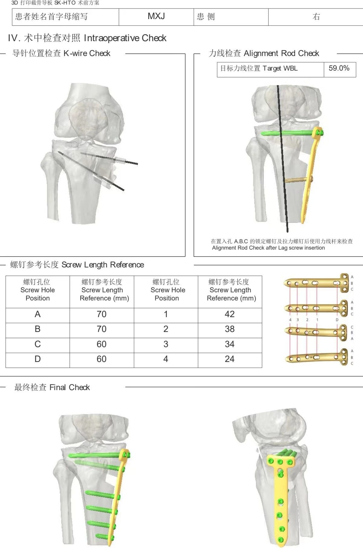 鋼板位置、螺釘位置及長度均可通過術前規劃計算,術中通過定位操作,基本與術前規劃一致,手術快速高效完成,外側合頁保留完整。無任何并發癥出現。術后見鋼板位置及力線糾正近乎完美!