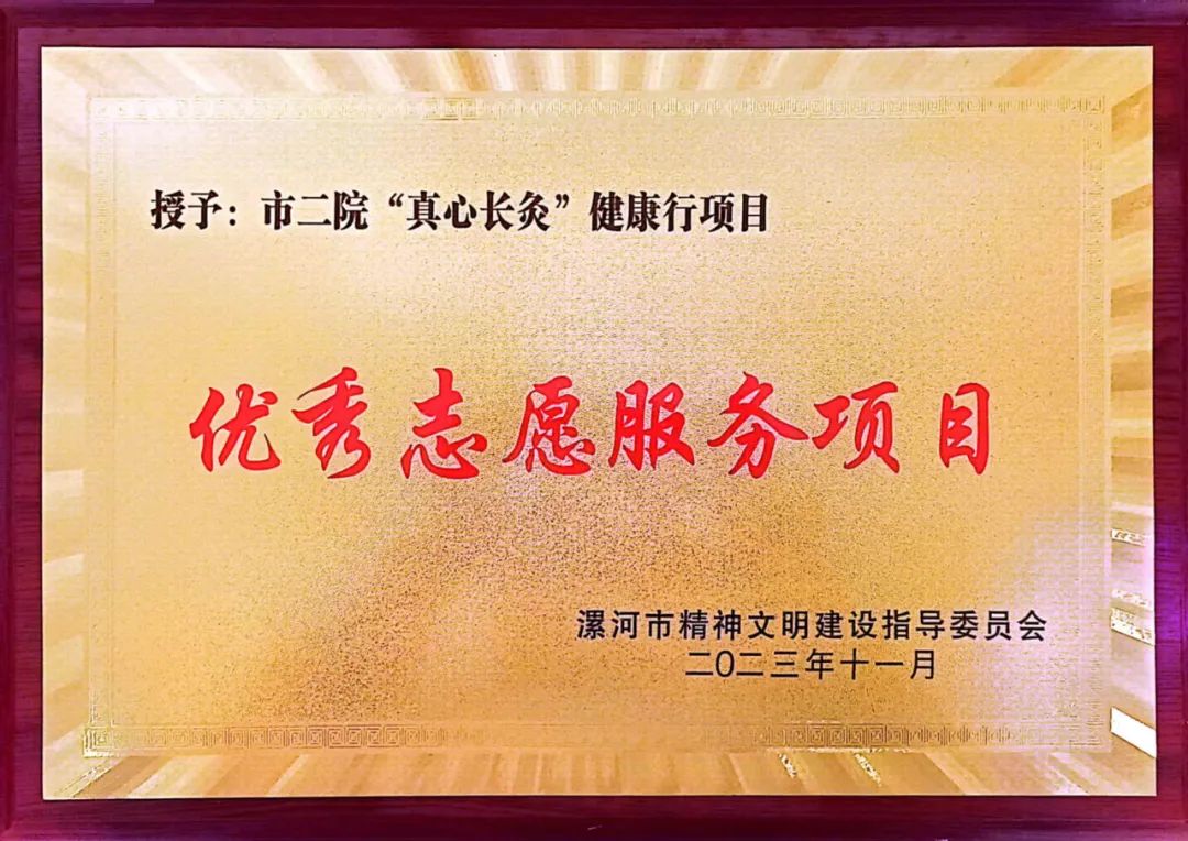 市二院“真心長灸”健康行項目榮獲“漯河市優秀志愿服務項目”