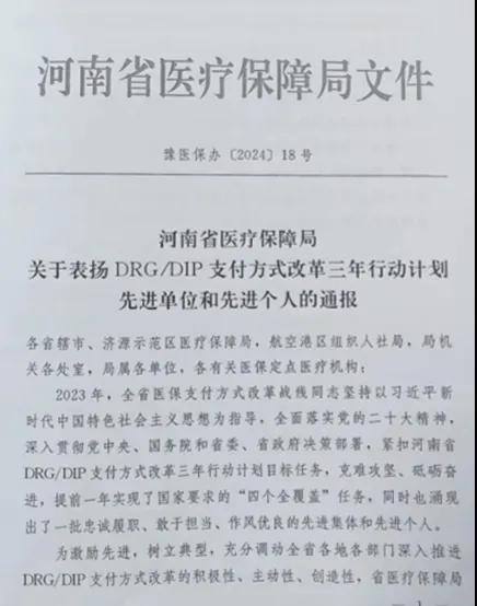近日,在河南省醫療保障局公布的《關于表揚DRG/DIP支付方式改革三年行動計劃先進單位和先進個人的通報》中,漯河市骨科醫院(漯河醫專二附院、漯河市立醫院)被授予河南省DRG/DIP支付方式改革三年行動計劃先進單位。