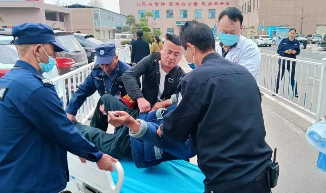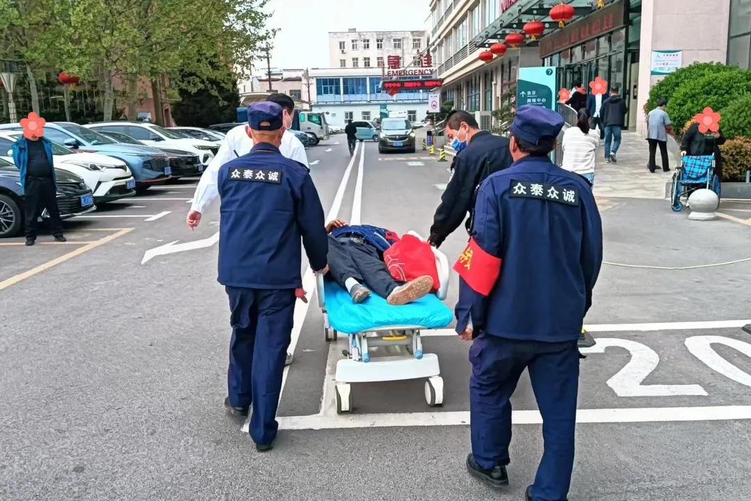 班長(zhǎng)王收首先利用醫(yī)院保衛(wèi)科“點(diǎn)對(duì)點(diǎn)”的安保設(shè)置,通知急診醫(yī)學(xué)科駐點(diǎn)的安保人員,及時(shí)與急診醫(yī)務(wù)人員取得聯(lián)系;同時(shí),安保隊(duì)員李文超等人迅速趕到,幫助急診科住院醫(yī)師王英杰一起,將平車推往現(xiàn)場(chǎng);聞?dòng)嵹s來(lái)的賈俊杰隊(duì)長(zhǎng)冷靜指揮,多名隊(duì)員合力將患者搬上了平車,并迅速轉(zhuǎn)移至急診搶救室。