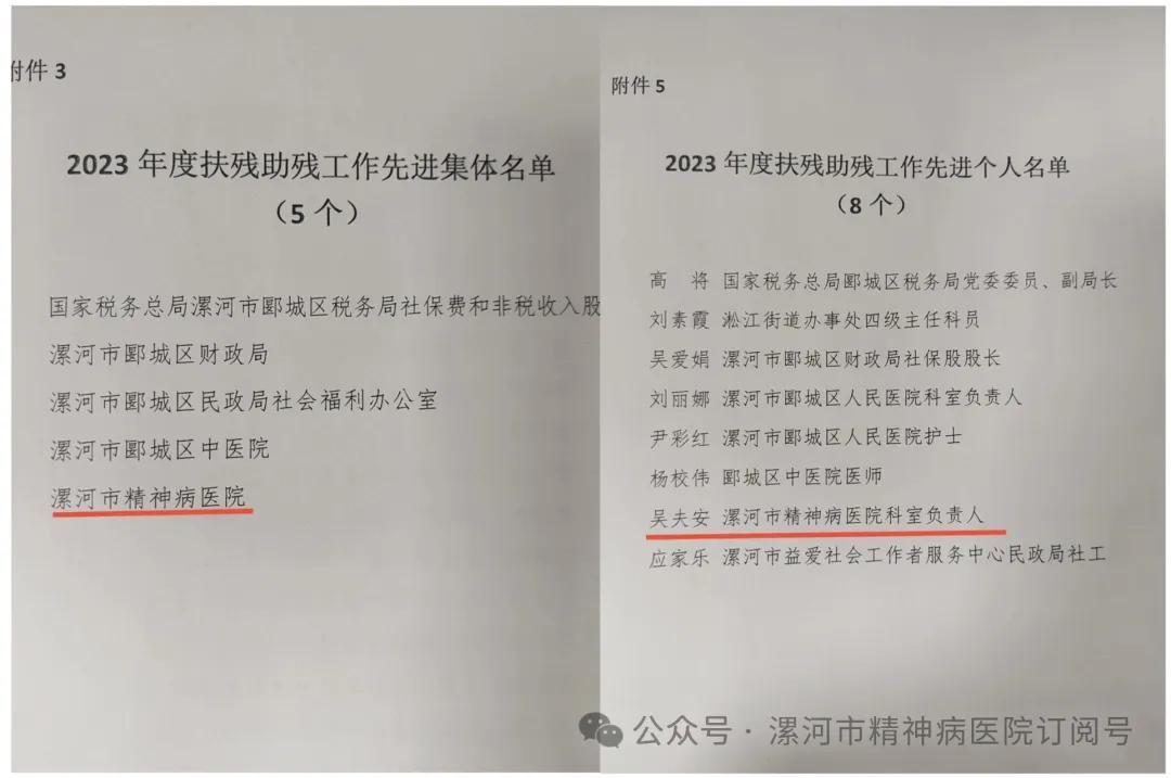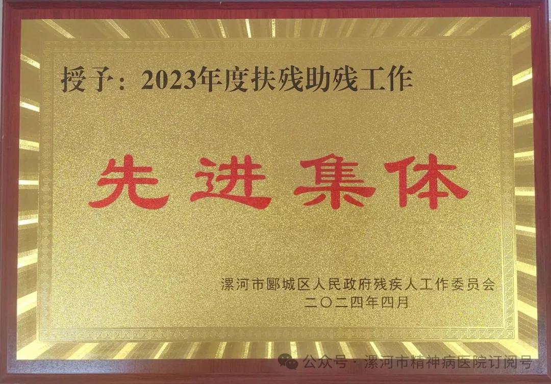 漯河市精神病醫院獲得“2023年度扶殘助殘工作先進集體