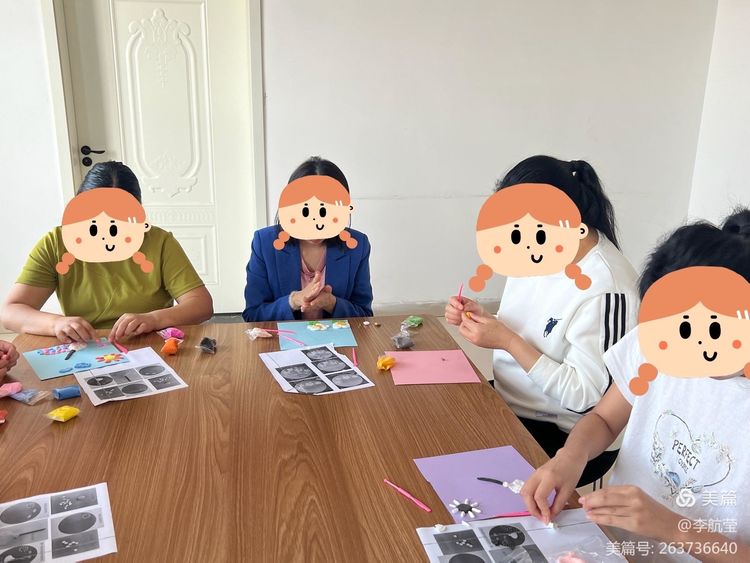 輔導員帶領同伴們一起完成關于“勞動最光榮”的主題粘土畫。