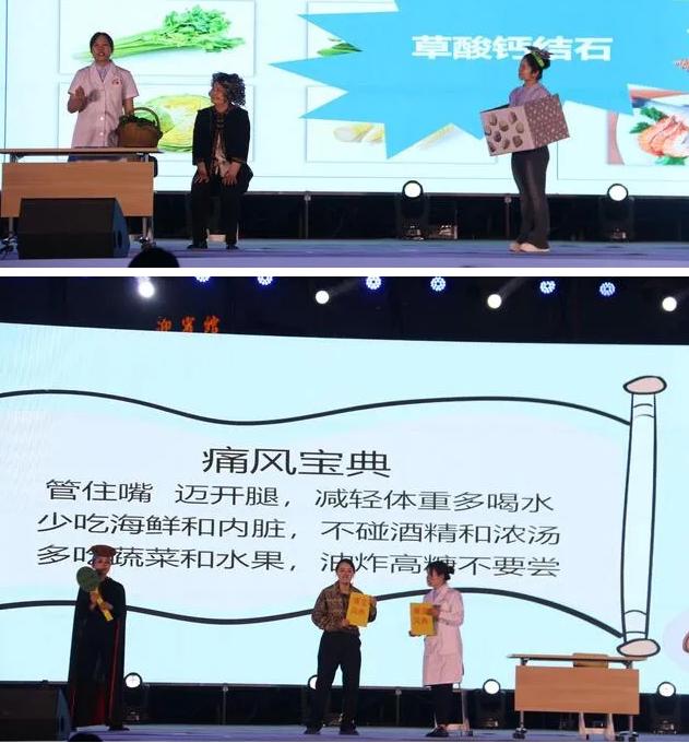 現場醫護人員展示的《與“食”俱進 “石”不再來》《燃燒我的卡路里》《過量飲酒 “肝”敗下風》《惹不起的痛風君》《當胸痛來臨時》《美麗的陷阱》等作品,形式新穎,采用情景劇、順口溜、快板等生動活潑、詼諧有趣的表演方式,圍繞健康生活方式、營養健康知識、慢性病防治等主題,進行通俗易懂、生動形象地講解,贏得現場評委和線上線下觀眾一致好評。