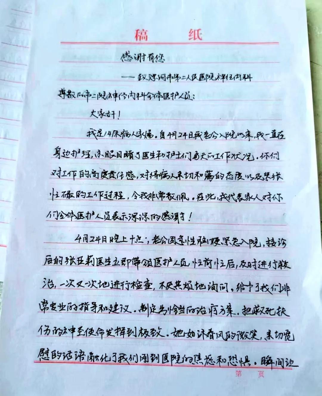 近日,市二院神經(jīng)內(nèi)科連續(xù)收到患者送來的感謝信,字里行間處處表達著對醫(yī)護人員的感激,對醫(yī)院診療技術(shù)、優(yōu)質(zhì)護理的贊揚和認可,傳遞著和諧、溫馨的醫(yī)患真情!