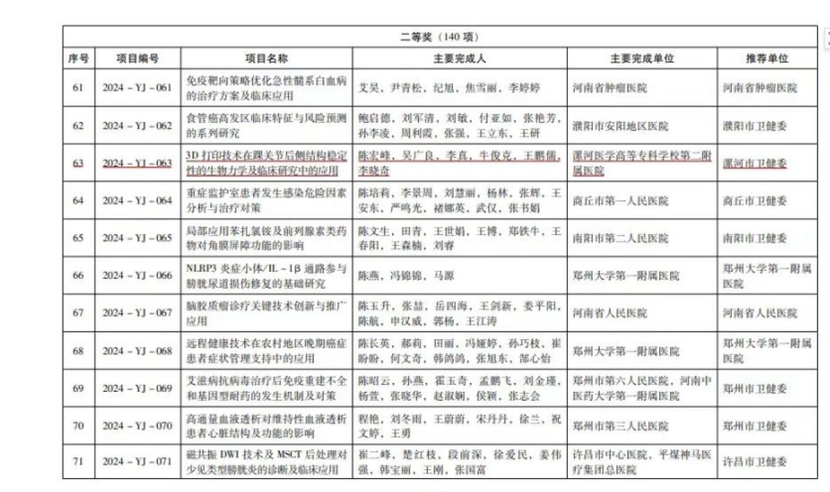 2024年度河南醫(yī)學(xué)科技獎"出爐",漯河市骨科醫(yī)院"中獎"三個(gè)項(xiàng)目!