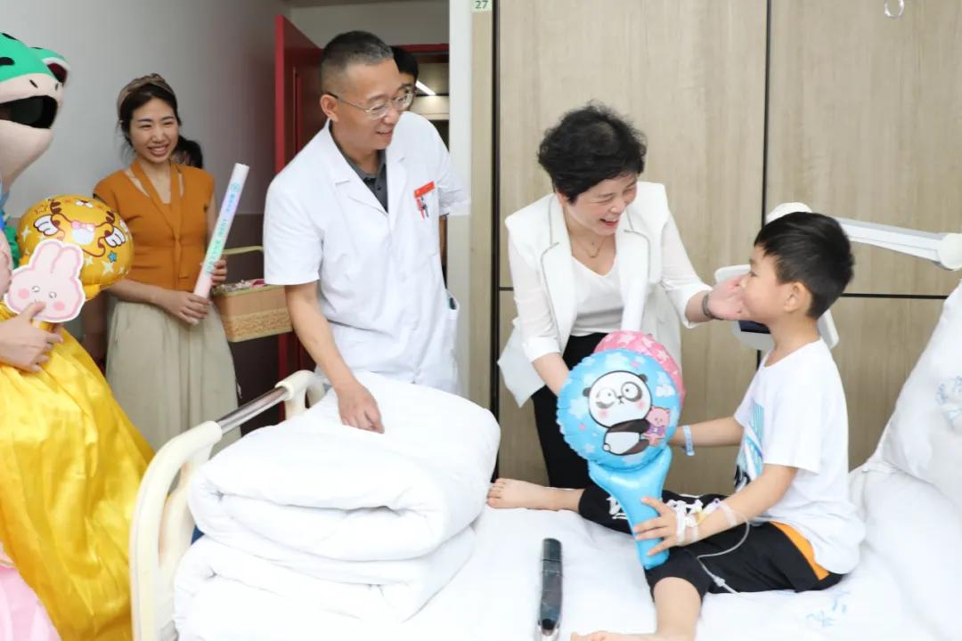 6月1日上午,市二院黨委書記魏松、院長王瑾攜班子成員、市兒童醫療中心主任蘇愛芳及兒科專家、相關科室人員來到門診大廳、兒科門診與病區為小朋友們送上暖心的節日禮物與祝福,與孩子們共度“六一”。