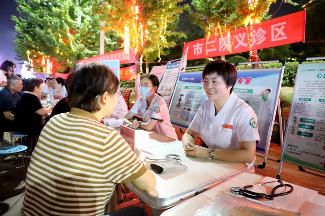 “市二院舉辦這個活動好啊,平常在醫院一號難求的專家來到了身邊,還是免費義診!今晚上我體驗了葫蘆灸、喝了養生茶,還做了個甲狀腺彩超,真是來著了!市二院舉辦這個活動真好!”一位前來紅楓廣場納涼的劉大媽高興地說道。為了鼓勵更多市民積極了解疾病防治知識,醫院還發放健康宣教資料、播放健康宣教視頻等多種形式,普及常見病防治知識,讓市民們對健康有更深入的了解和識。