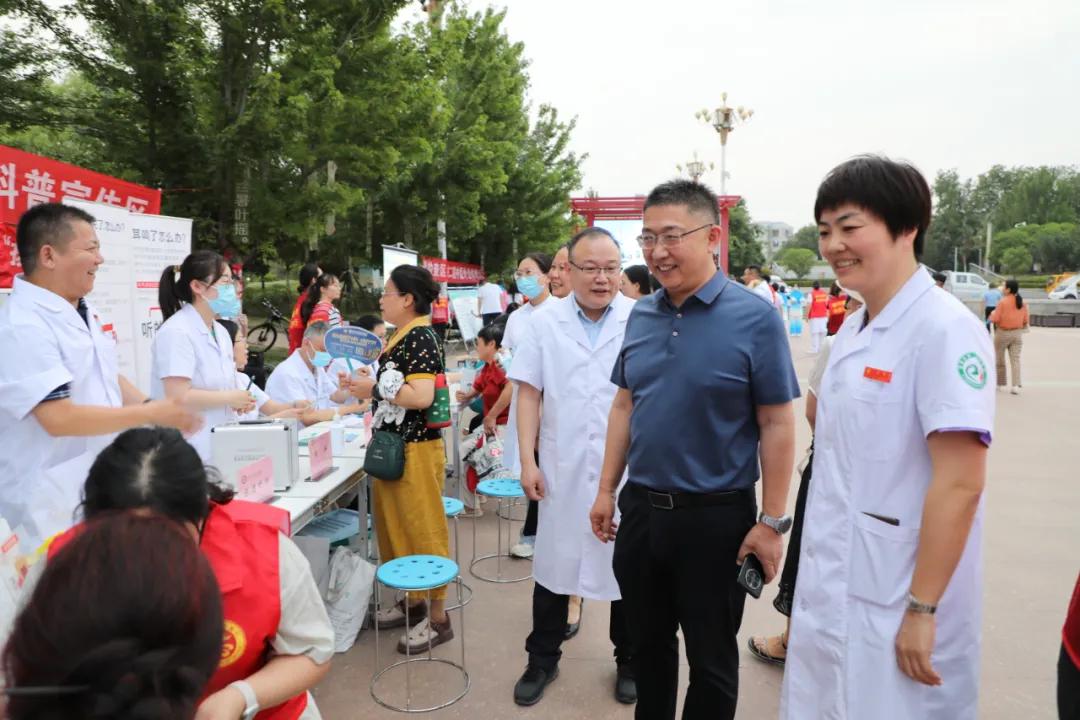 5月31日晚7時,根據市衛健委統一部署,市二院在紅楓廣場開展了“漯河市衛生健康青年人才發展聯盟大型義診活動”,在炎炎夏日為廣大市民送去陣陣清涼。市衛健委黨組副書記、副主任王向良帶領市衛健委人事科科長王滿華、醫政科長王彩紅等蒞臨現場并給予指導。