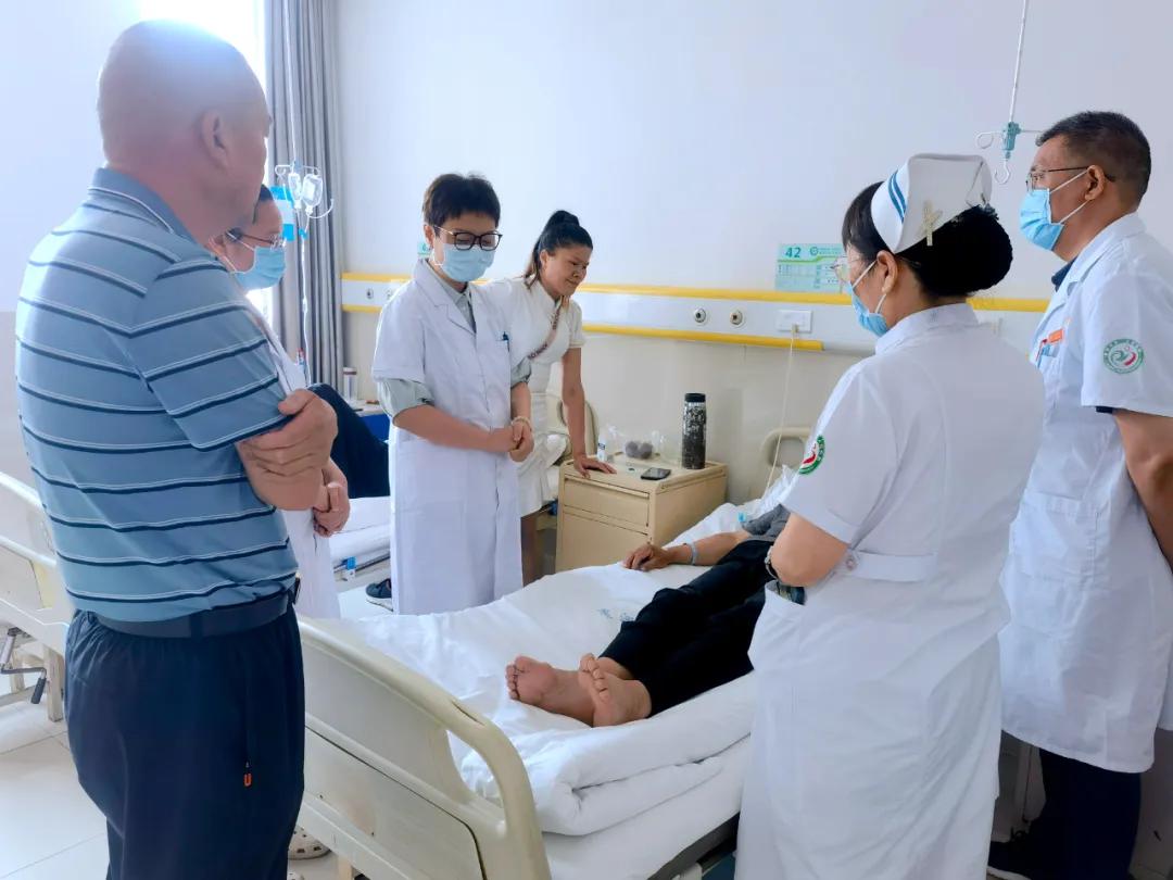 隨后,唐琳教授一行在市二院消化腎病科關文明主任及護士長徐偉芹陪同下走進病區,進行教學查房、指導。65歲的何先生患有慢性腎臟疾病,曾輾轉多家醫院接受治療,但因依從性不佳,無法有效配合診療方案,導致治療效果不甚理想。唐琳教授了解情況后,憑借豐富的臨床經驗,耐心細致地查看了患者的病歷資料,并針對患者的生活習慣、疾病認知及治療方案進行了深入的分析和講解。她以通俗易懂的方式,向患者解釋了疾病的成因、吸煙飲酒等不良生活習慣對疾病的影響,以及不同治療方案的優缺點,使患者深刻認識到積極配合治療的重要性。