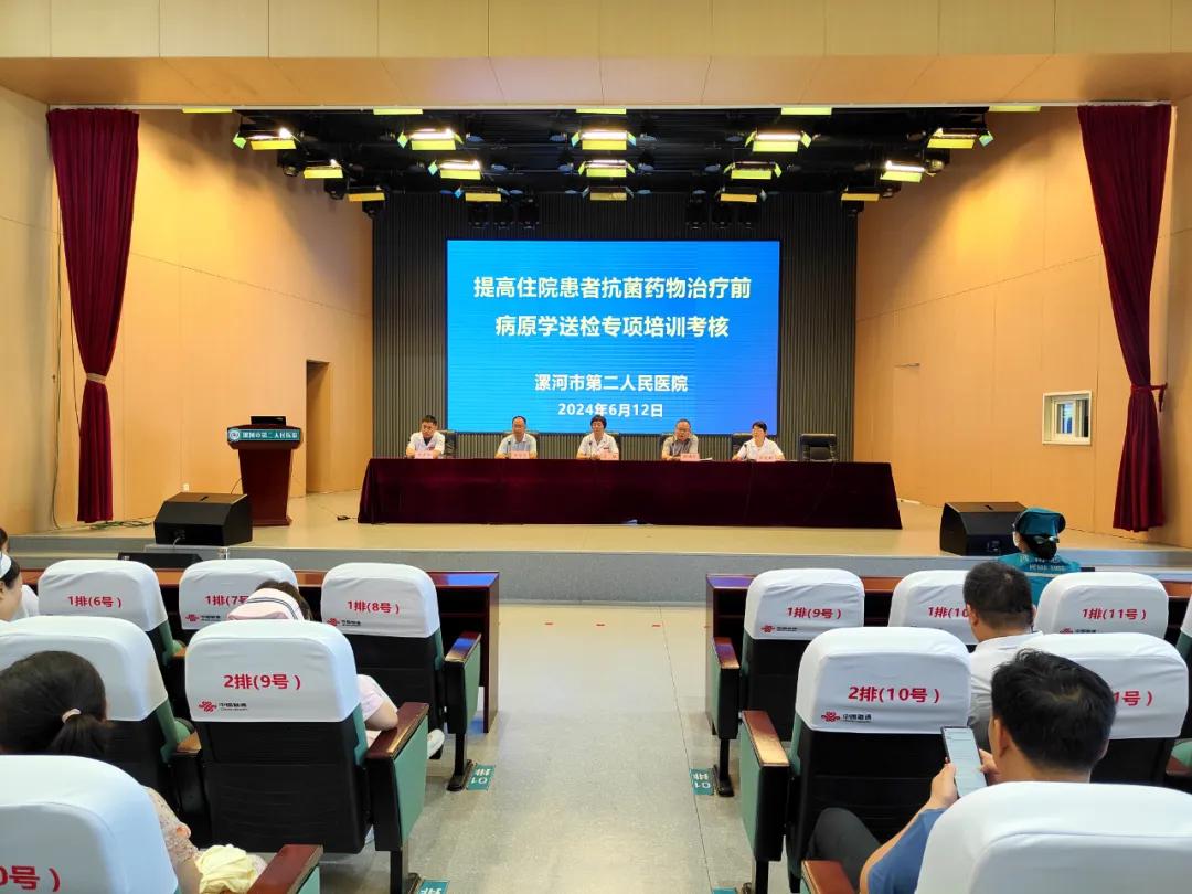 為貫徹落實國家衛健委醫療質量安全及河南省質控工作改進目標,提高抗菌藥物使用科學性、規范性,進一步提升病原學送檢意識,按照醫院感控委員會工作計劃,6月12日下午,市二院感控辦、醫務科、藥劑科聯合,在12樓學術報告廳開展了“提高住院患者抗菌藥物治療前病原學送檢率”專項培訓考核工作。院長王瑾、副院長張曉東及臨床各科室主任、護士長、醫生、護士等200余人參加。