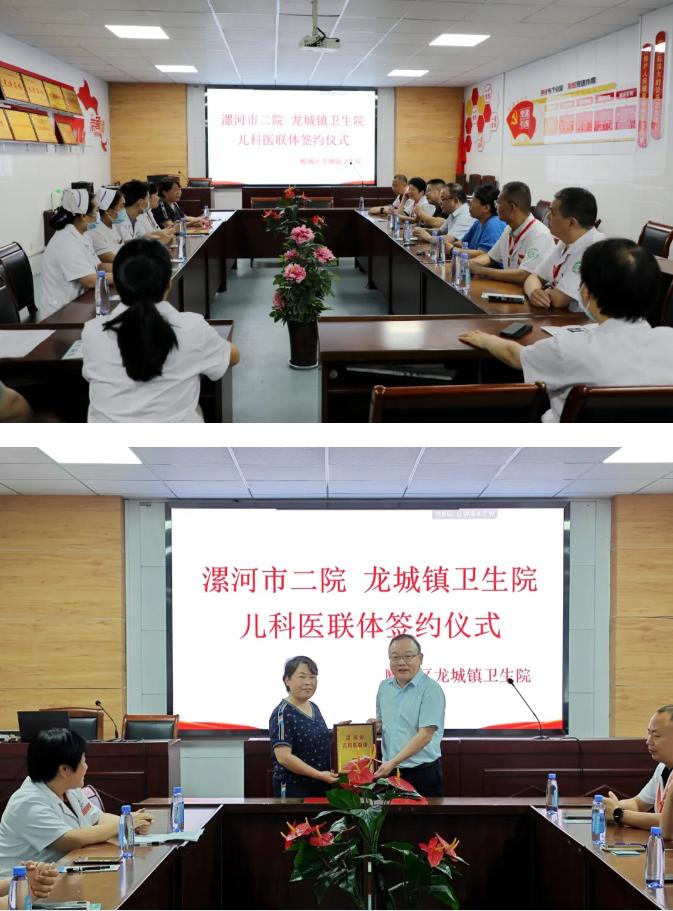 為提升漯河市兒科醫(yī)療服務(wù)能力,順暢危重、疑難、康復(fù)患者雙向轉(zhuǎn)診渠道,促進(jìn)區(qū)域資源共享、信息互聯(lián)互通,推動分級診療制度建設(shè),6月19日,市二院與龍城鎮(zhèn)衛(wèi)生院舉行了兒科醫(yī)聯(lián)體簽約暨授牌儀式。市二院副院長張曉東、郾城區(qū)紅十字會副會長李山峰、龍城鎮(zhèn)衛(wèi)生院院長葛雙云及相關(guān)科室人員參加了本次活動。
