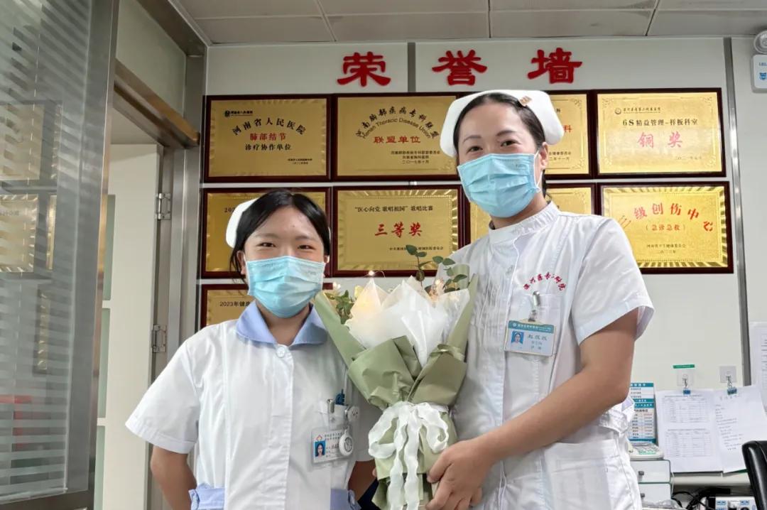 “趙老師,馬上就要轉(zhuǎn)科,真舍不得你,舍不得胸外科”,胸外科實習(xí)生龐晶晶依依不舍地對帶教老師趙蕊蕊說道,更是送上鮮花表達感謝。