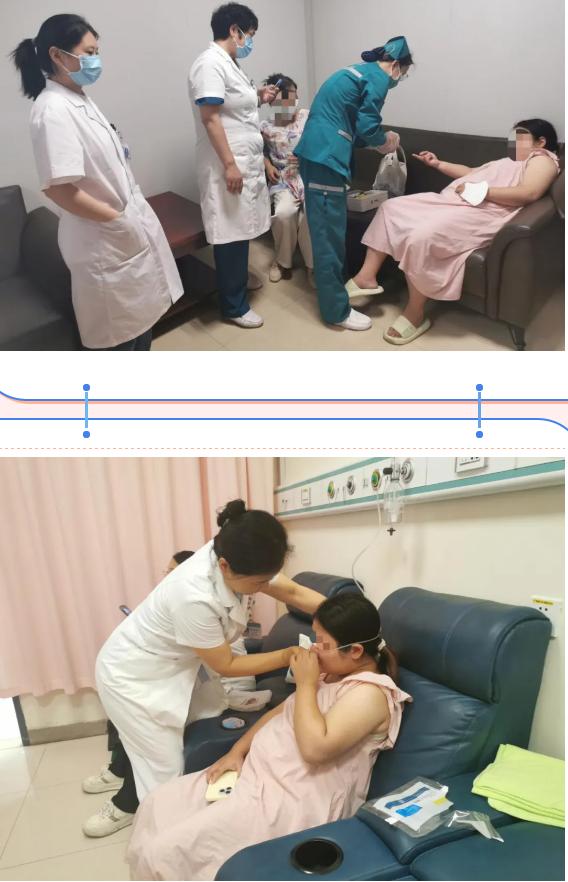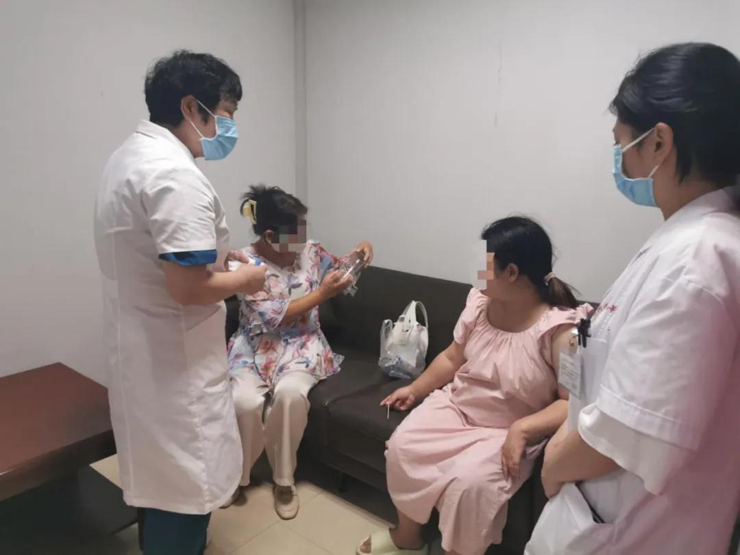 1分鐘后,婦產科張秀麗醫生迅速來到檢驗科,2分鐘后,急診科的李想醫生、王靜護士推著平車,帶著急救設備也來到檢驗科。他們爭分奪秒,分工合作,婦產科醫生查看孕婦及胎兒基本情況,急診科醫生、護士立即測量手指血糖、血壓等操作。隨后,大家快速的把患者轉移到婦產科門診胎心監護室,立即進行吸氧、胎心監護等操作。