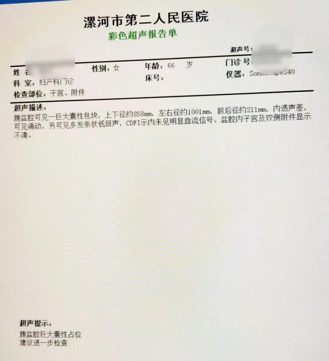 據了解,患者為老年女性,66歲,8月3日以“雙側卵巢粘液性囊腺瘤術后8年,腹部進行性增大7年”為主訴入住婦產科。8年前患者曾在市二院婦產科行雙側卵巢粘液性囊腺瘤切除+闌尾粘液性囊腫切除術,術后至今未能堅持定期復查。近半年來患者腹部膨隆尤為明顯,飲食差、營養差,腹脹難忍,身心極為痛苦。入院查體:腹部增大如懷孕9個月大小,雙下肢腫脹明顯。彩超提示:腹盆腔巨大囊性占位(858x1001x211mm)。全腹+盆腔CT+增強提示:腹盆腔大量不規則囊實性液性密度影大小約128x87x125mm,腹腔臟器、子宮、直腸明顯受壓、推移。