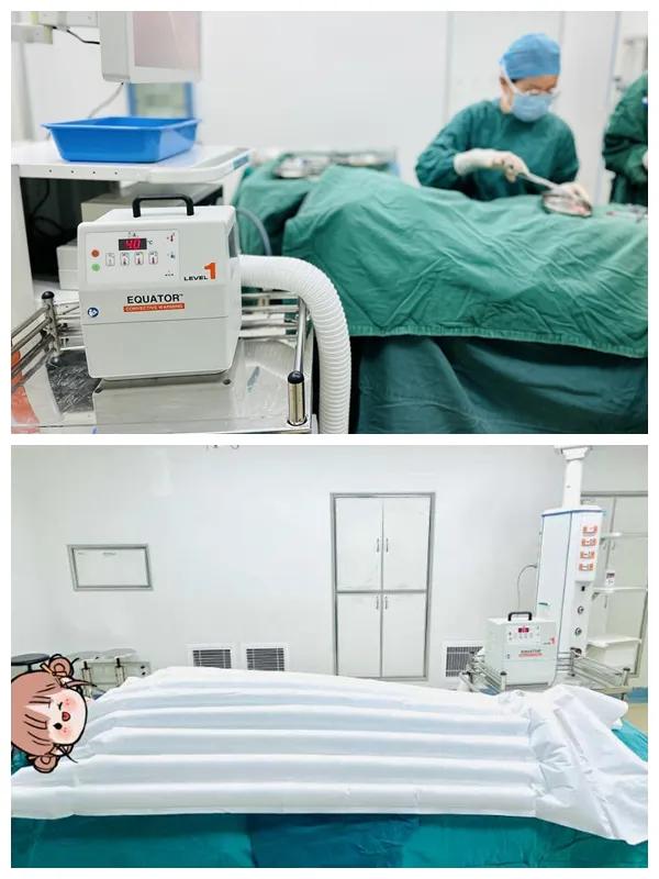 患者進入手術間后,護理人員將特制的小棉被蓋在患者的肩部,帶給患者滿滿的安全感。此外,手術室內還配備了加溫毯,讓患者在手術中時刻處在溫暖環境,消除他們的害怕恐懼緊張的感覺,有效提升患者體溫,防止低體溫的發生,確保患者在整個手術過程中都處于暖身又暖心的狀態。為了防止患者術中體溫下降,護理人員還利用恒溫箱提前將輸注液體、沖洗液加溫,可避免體內過多熱量散失,大大提高患者的舒適度。