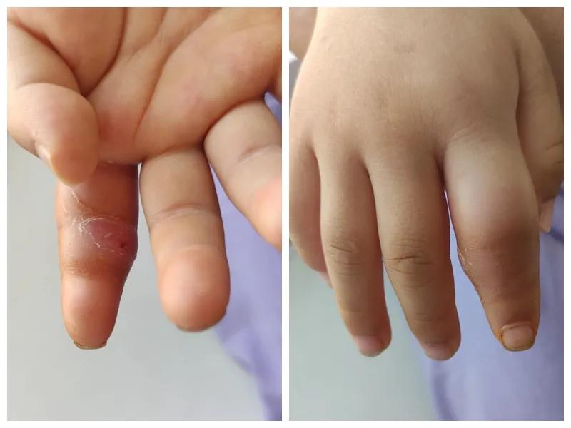 第三天開始,月月哭鬧不止,一直說手疼,怎么哄也不行,于是在當地醫院治療了10來天,然而月月的手指依然腫得像個胡蘿卜,疼痛感依然存在。此時,月月的媽媽才覺得事情不大對勁,于是經過打聽,慕名來到市二院顯微外科。入院后,經檢查發現,月月的右食指骨質有侵蝕,骨骺有缺損,甚至會影響以后手指的發育。聽到這個消息,月月媽媽感覺心都揪住了。
