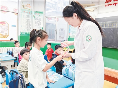 (記者 齊國(guó)霞)9月20日是第36個(gè)“全國(guó)愛(ài)牙日”。今年“全國(guó)愛(ài)牙日”的宣傳主題是“口腔健康 全身健康”,副主題是“全生命周期守護(hù) 讓健康從‘齒’開(kāi)始”。9月19日上午,在市教育局的支持下,市疾控中心工作人員聯(lián)合市二院口腔門診部醫(yī)師,走進(jìn)市實(shí)驗(yàn)小學(xué)開(kāi)展兒童口腔專題健康科普教育活動(dòng),增強(qiáng)學(xué)生口腔保健意識(shí)。