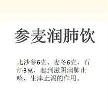 北沙參6克、麥冬6克,滋陰潤肺止咳,生津止渴的作用;肺陰不足以后會影響相鄰臟腑,最容易受影響的就是心和脾胃,可以加些百合、石斛。(皮膚科 鞏潁)