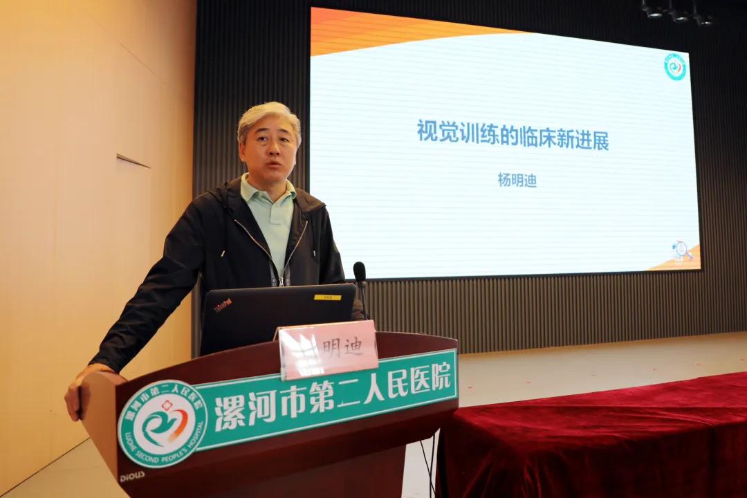 中國人民解放軍總醫院第六醫學中心楊明迪教授以《視覺訓練的臨床新進展》為題,從視覺訓練的定義、方法、適應癥和弱視訓練的新理念等方面進行專題報告。