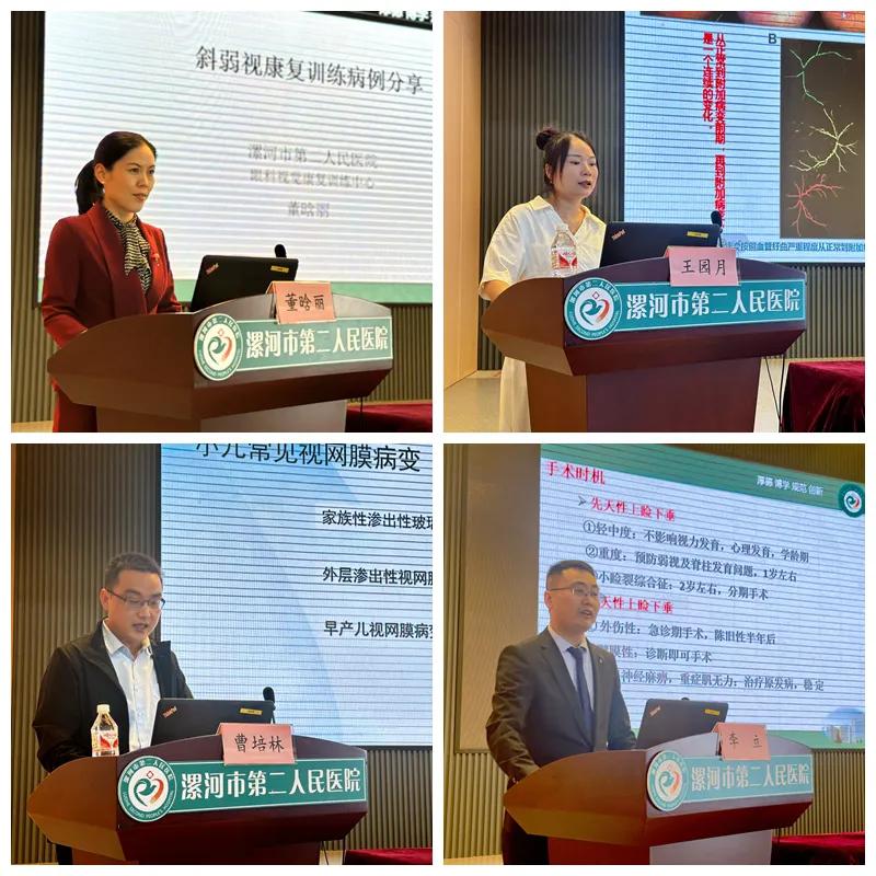 市二院董晗麗視覺視訓師就《斜弱視康復訓練病例分享》進行了交流;市中心醫院王園月醫生對《早產兒視網膜病變的規范化診療及隨訪》進行了解讀;市醫專二附醫院曹培林醫生分享了《小兒常見視網膜相關病變的診治經驗》;市二院眼科主任李立分享了《上瞼下垂的診斷及治療》。