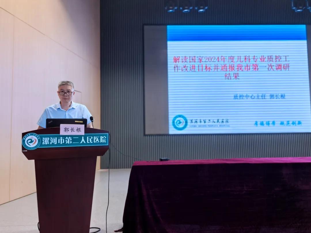 在質控專題培訓會上,副院長張曉東致辭并表示:作為漯河市兒科及小兒外科專業醫療質量控制中心責任單位,我們始終高度重視質控中心工作,將在省質控中心的指導下,市衛健委的領導下,加強質控中心的建設和發展,充分發揮質控中心作用,推動我市兒科醫療質量的持續改進,實現一切為了患兒安全的初心使命。