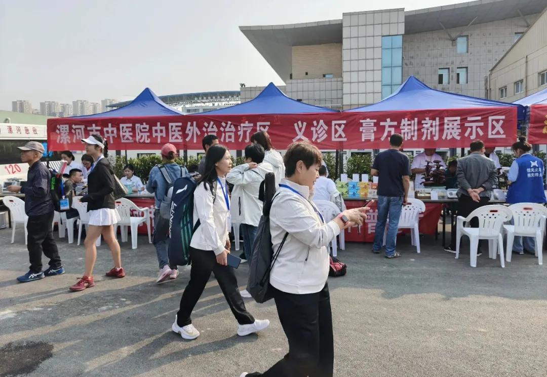 為助力2024年“九九重陽”全民健身主題活動,弘揚中華民族愛老、敬老的傳統美德,在重陽節來臨之際,10月9日上午,漯河市中醫院醫聯體辦公室組織醫院多科室專家團隊到漯河市體育場為前來參賽交流人員提供中醫宣講及健康義診服務。