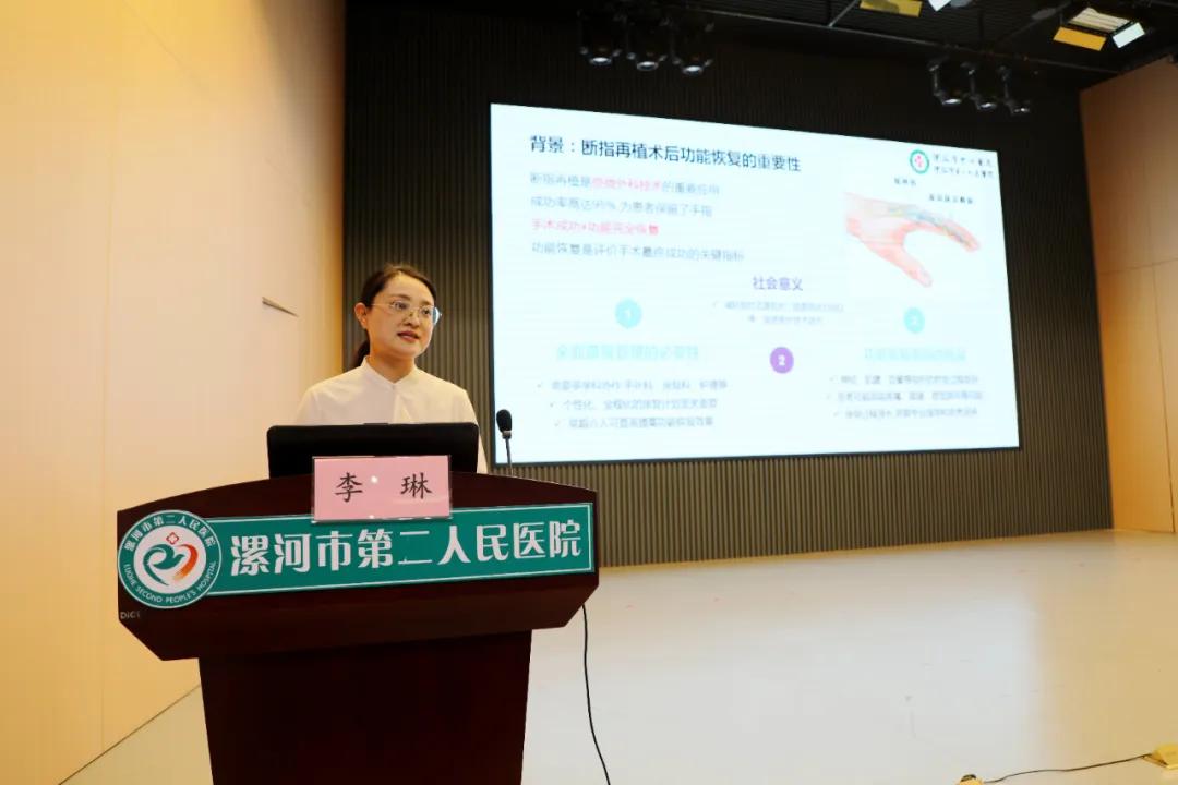 學術交流會上,市中心醫院創傷骨科外科護理規培基地秘書李琳講解了《全程康復護理管理模式在斷指再植患者術后功能恢復中的應用》,分享醫院的全程康復護理管理模式,實現了從術前準備到長期隨訪的全程管理,提高了康復治療的標準性和個體化水平。