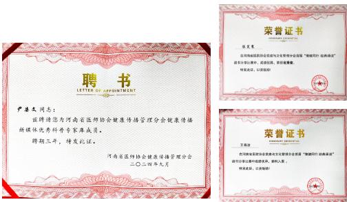 同時,我院尹姿文獲聘河南省健康傳播新媒體優秀科普專家庫成員,我院陳笑寒、王海波榮獲“豫健同行 經典誦讀”讀書分享比賽優秀獎!