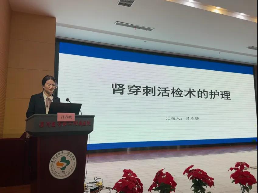 腎穿刺活檢術是腎臟病病理診斷的唯一方法,有助于進一步了解疾病的發生、發展及轉歸,血液凈化室護士長呂春曉以《腎穿刺活檢術的護理》為題,針對腎穿活檢術的目的、適應癥、禁忌癥、術前、術中、術后護理及并發癥的觀察進行講解。內容貼近臨床,為臨床護理工作指明了方向。