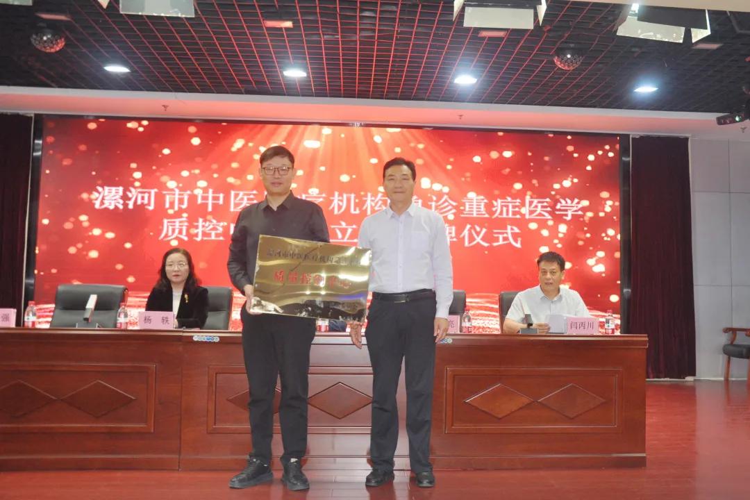 漯河市衛(wèi)健委四級調(diào)研員黃紅亮宣讀《關(guān)于變更市級中醫(yī)醫(yī)療機構(gòu)急診重癥醫(yī)學質(zhì)量控制中心主任、副主任、專職秘書名單的通知》并現(xiàn)場授牌。