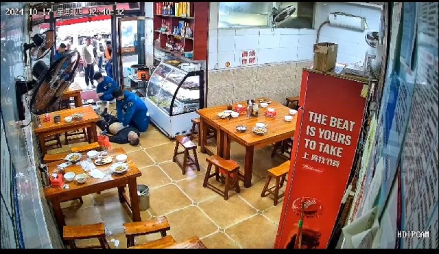 10 月 17 日中午 12 時 30 分,市二院急診科警報鈴聲響起,馬路街有一位中年男性就餐時突然暈倒、昏迷不醒、生命垂危,急需緊急救治。接到出車命令后,120指揮中心及急診科醫生王磊與現場人員保持持續通話,遠程指導,為患者進行心肺復蘇。與此同時,急救人員迅速行動,僅僅 3 分鐘就趕到了現場,快速評估后發現患者頸動脈搏動消失,無自主呼吸。
