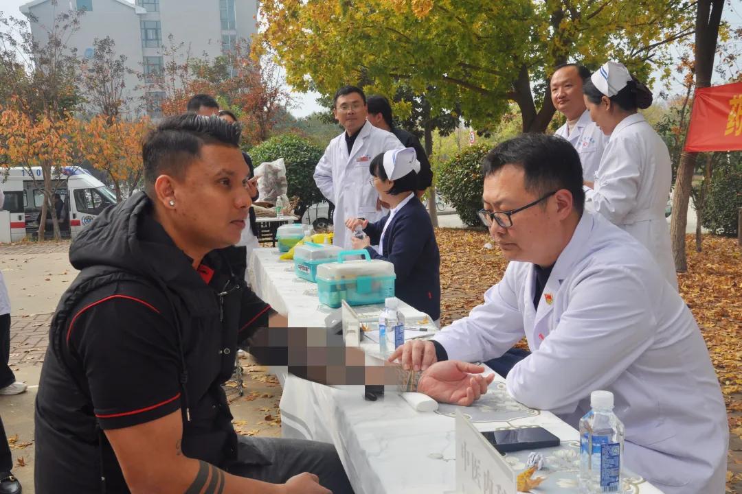 中醫(yī)義診區(qū)域,副主任中醫(yī)師彭壯、主治中醫(yī)師李佳攜手坐診,學(xué)生們排起了長(zhǎng)長(zhǎng)的隊(duì)伍前來體驗(yàn)中醫(yī)號(hào)脈等特色診療服務(wù)。在漯河醫(yī)專學(xué)習(xí)的數(shù)名外國(guó)留學(xué)生深深熱愛著中華傳統(tǒng)文化,對(duì)中醫(yī)藥知識(shí)有著濃厚的興趣,在對(duì)外交流處王瑾老師的陪同下,紛紛參與體驗(yàn)。市中醫(yī)院彭壯醫(yī)生為斯里蘭卡籍留學(xué)生仝深平中醫(yī)把脈問診,針對(duì)其脈象,給予合理的飲食建議和健康生活指導(dǎo),受到外國(guó)留學(xué)生們的點(diǎn)贊!