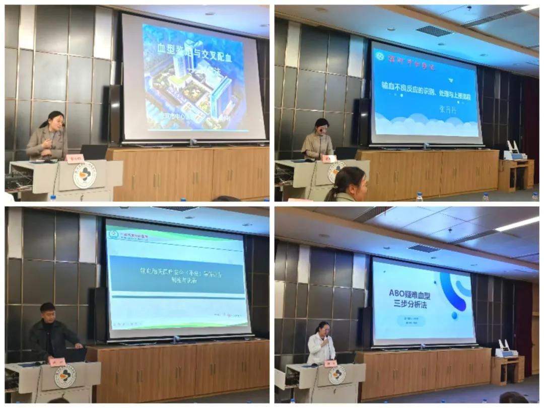 第二部分是專題培訓會,首先由漯河市中心醫院賈小村老師為大家分享了《血型鑒定與交叉配血》,其次,由漯河市中醫院張丹丹老師為大家帶來《輸血不良反應的識別、處理與上報》,緊接著,臨潁縣人民醫院陳陽主任給大家匯報了《輸血相關不良事件的報告》,最后,漯河醫專二附院劉歡老師給大家帶來了《ABO疑難血型三步分析法》。這些老師從實際工作出發,具體分析了輸血工作中可能遇到的問題及注意事項,無私分享了寶貴的工作經驗,會議在掌聲中圓滿結束。