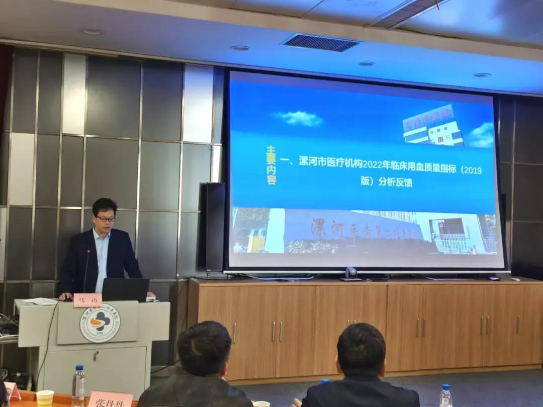 會議接下來分為兩個部分進行,第一部分是質控工作會,由漯河市臨床用血質控中心主任馬濤主持,馬濤主任分析了漯河市各個二級以上醫療機構的臨床用血質量控制十大指標,對存在的問題做出了具體的分析指導,鼓勵大家再接再厲繼續做好輸血質控工作。