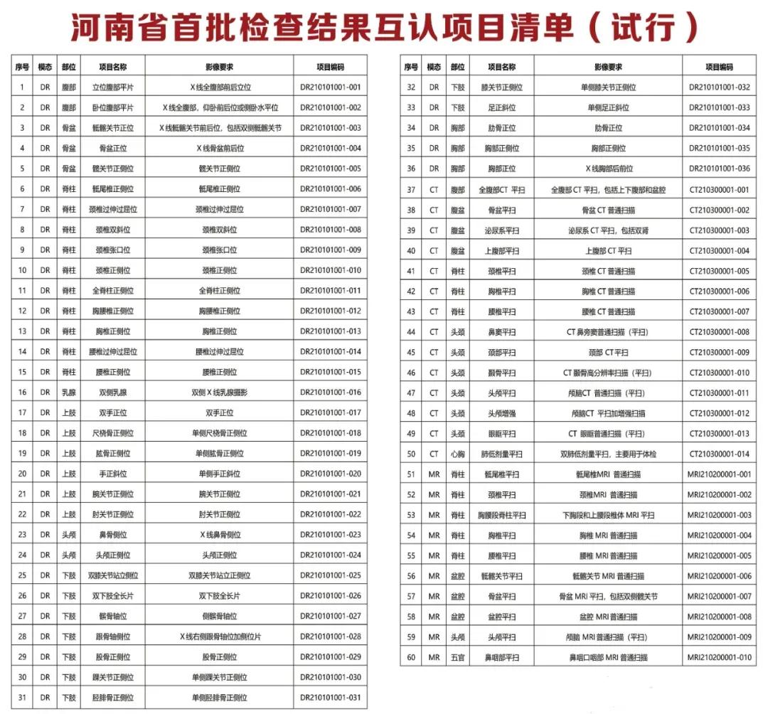 1.全省同級醫療機構間,屬互認項目的檢查檢驗結果,應互相認可。