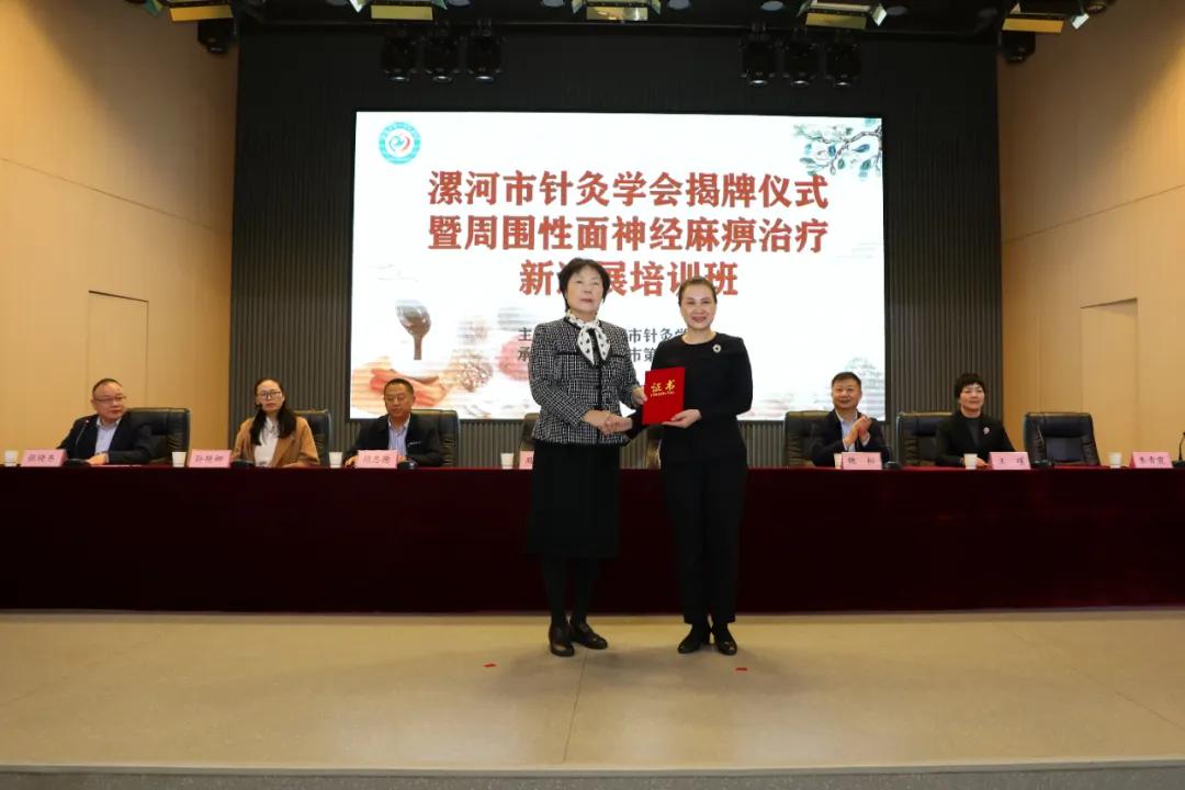 隨后,各參會領導向漯河市針灸學會會長、副會長頒發了證書。