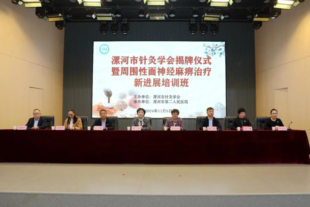 11月8日,舉行了漯河市針灸學會揭牌儀式暨周圍性面神經麻痹治療新進展培訓班。河南省針灸學會會長路玫教授、副會長錢寶延教授,市衛健委副主任胡忠德、中醫科科長孫艷娜,市二院黨委書記魏松、院長王瑾及班子成員,市針灸學會會長、市二院中醫針灸科主任朱青霞等參加揭牌儀式。儀式由副院長張曉東主持。
