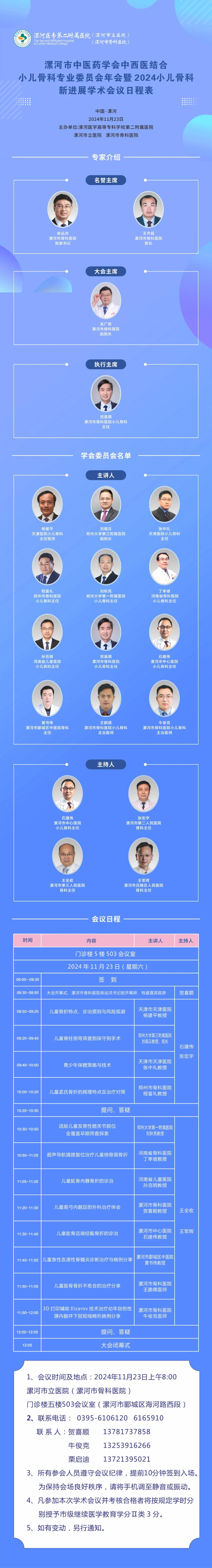 11月23日 漯河市中醫藥學會中西醫結合小兒骨科專業委員會年會暨2024小兒骨科新進展學術會議