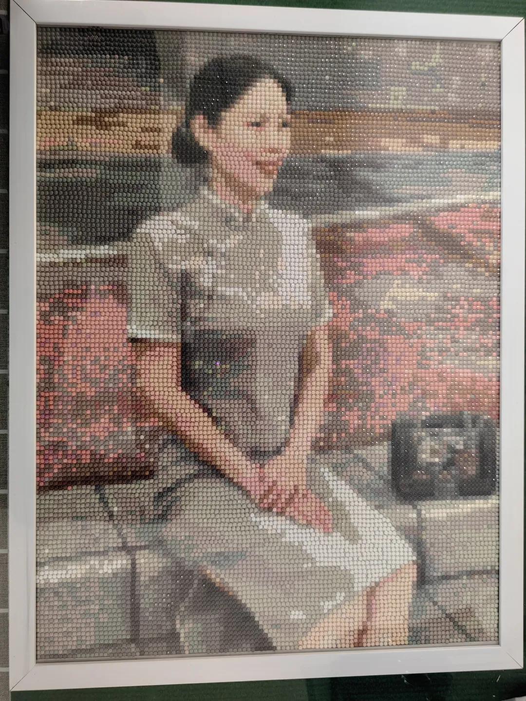 為了表達感激之情,皓皓在媽媽的鼓勵下,利用假期和周末的兩個多月時間,堅持不懈地精心制作,最終完成了這幅以“鉆石”鑲嵌而成的董醫生肖像畫,專程送給眼科團隊。
