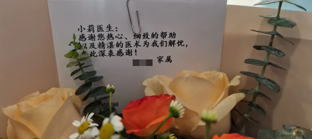 本次入院,是為了通過二次手術處理左冠狀動脈前降支的病變。有了第一次的溫暖經歷,患者內心十分坦然,并向心內一科手術團隊表達了十足的信任。術中,心內一科手術團隊為其植入了1枚支架和藥物球囊,手術過程順利,患者術后狀態良好。在即將出院之際,為了表達對科室醫護團隊的感謝,患者親手將兩束鮮花送到張小麗醫生和劉丹護士長的手中?;颊呒捌浼覍俦硎?,幸得漯河市骨科醫院醫 生們的精湛醫術和細心治療,使其得以迅速康復。這些鮮花,就是他們對醫生們無私奉獻和辛勤付出的最好肯定。